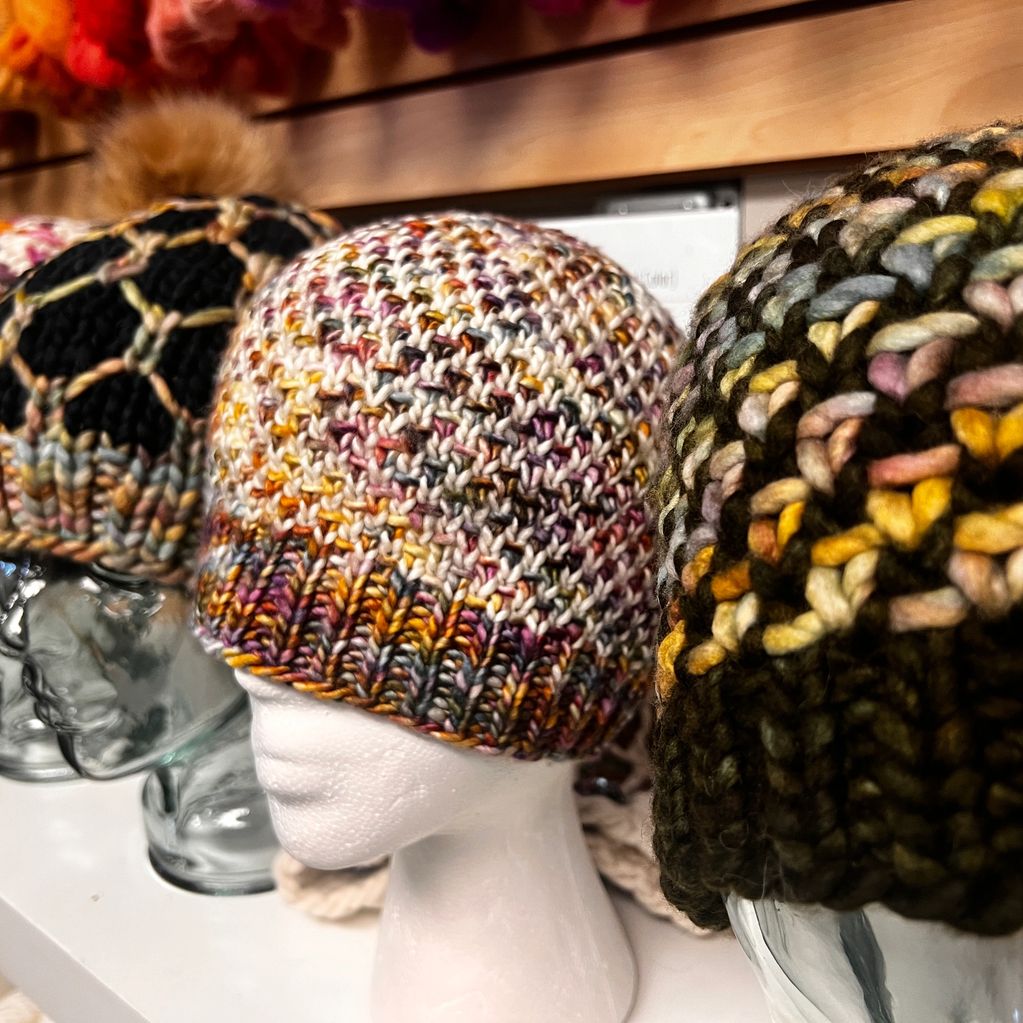 Learn to knit a hat or neck warmer in the round with bulky yarn and large needles. Class is one hour. After class, stop in anytime for help.