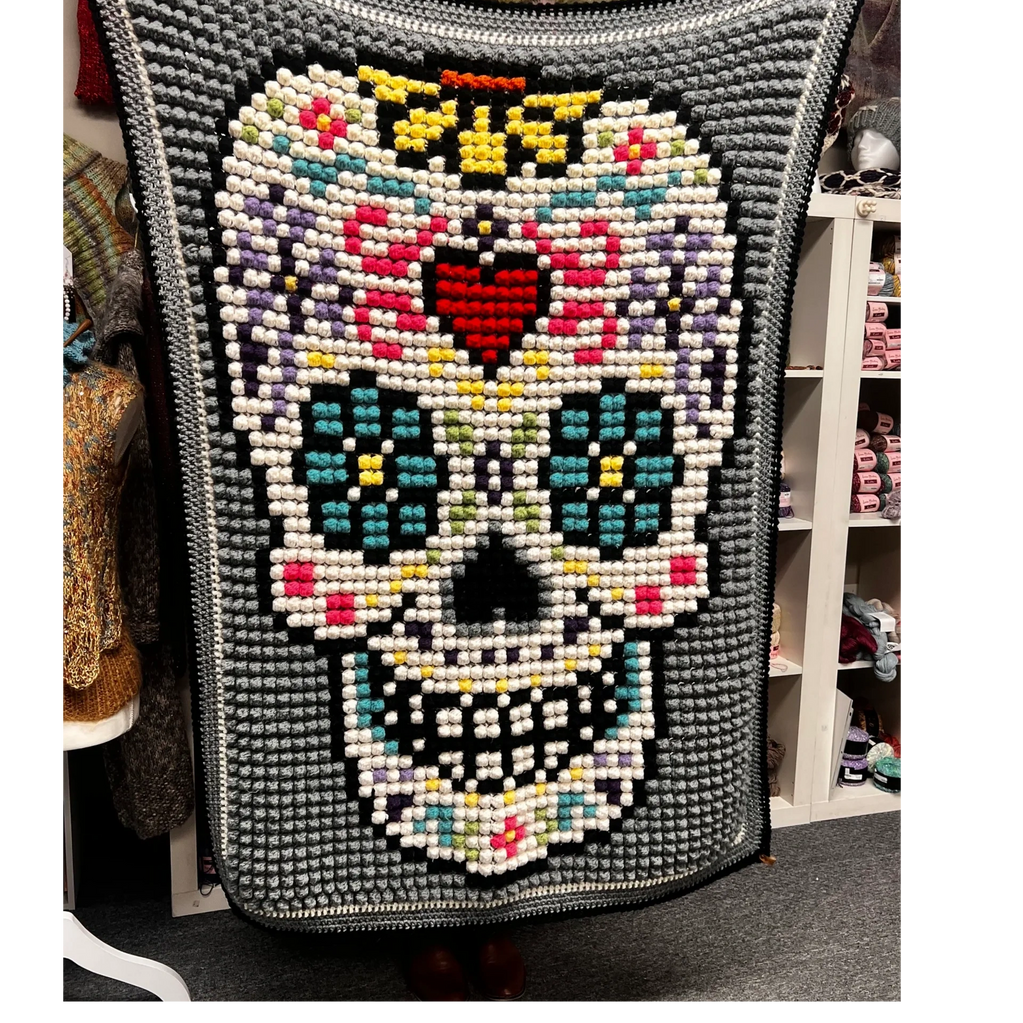 Learn a fun bobble technique to make a beautiful blanket with a sugar skull pattern on it!